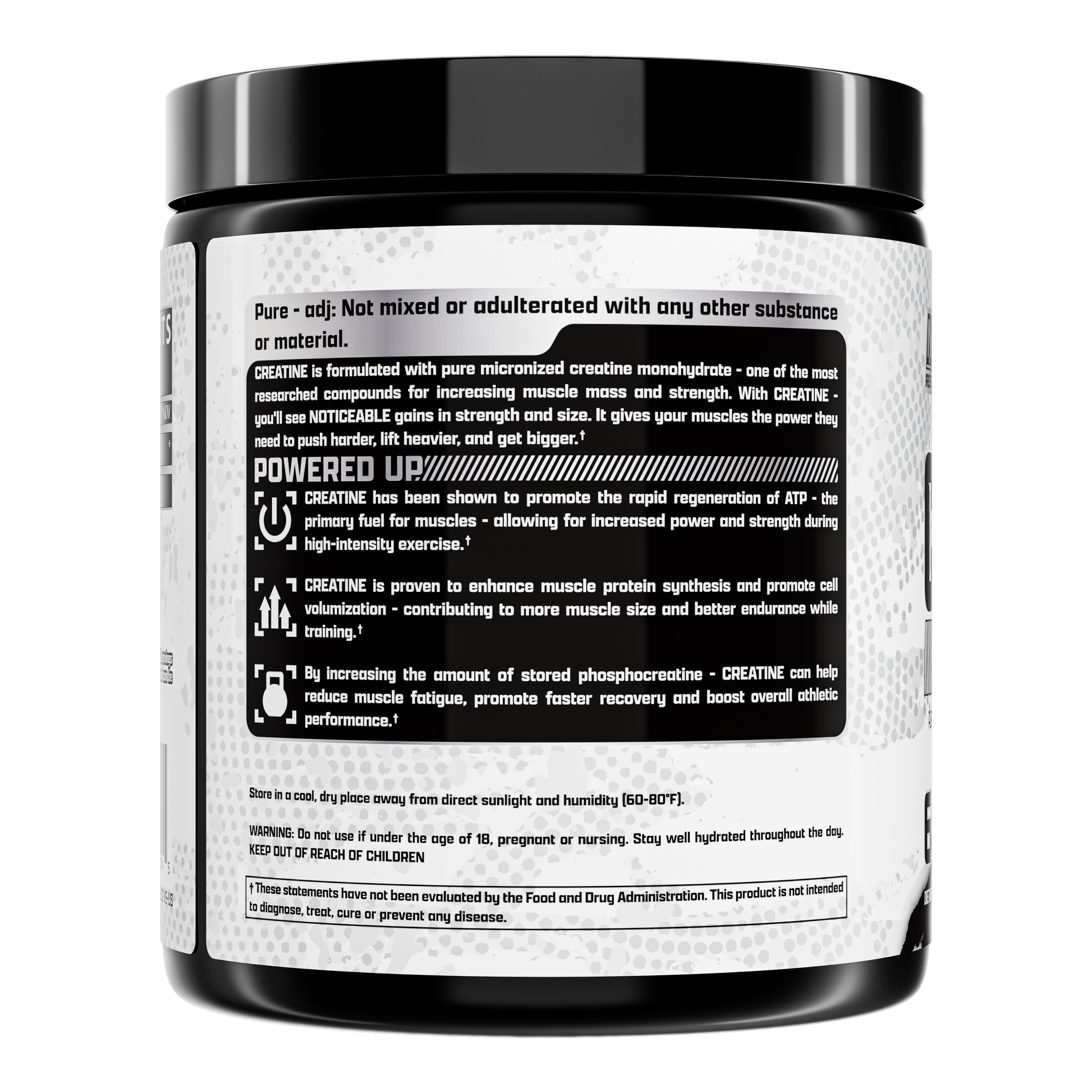 Contiene monohidrato de creatina 100% puro y micronizado, lo que garantiza una mejor absorción y eficacia en el organismo.