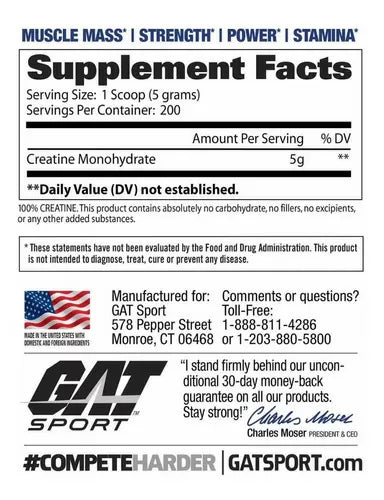 Contiene monohidrato de creatina 100% puro y micronizado, lo que garantiza una mejor absorción y eficacia en el organismo.